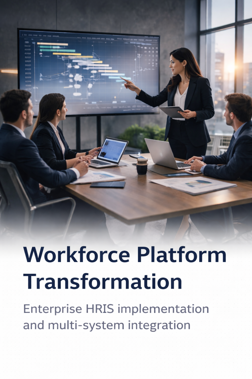 Our work included defining the integration strategy, aligning stakeholders, overseeing vendor delivery, and ensuring seamless connectivity with payroll systems, identity management platforms, recruitment tools, learning systems, and finance platforms.